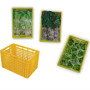 A caixa plástica agrícola vazada, possui 38 cm de altura e com maior capacidade volumétrica de carga, com cerca de 75 litros. Paletizável no padrão PBR (1,00 x 1,2 mts), medida de paletes mais utilizada no Brasil. Totalmente lavável, com todos os requisitos para o processo de higienização e purificação dos produtos acoplados. Aplicações: