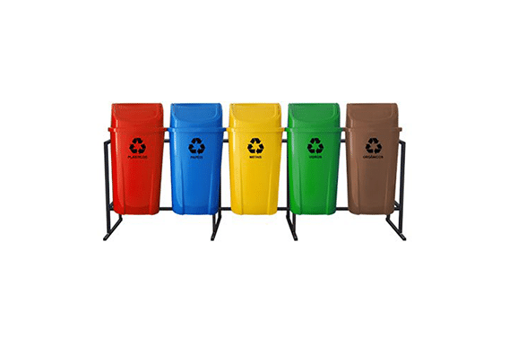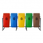 As Lixeiras para coleta seletiva são fabricadas nas cores verde, azul, vermelho, amarelo, cinza, laranja, preta, branca e marrom.
